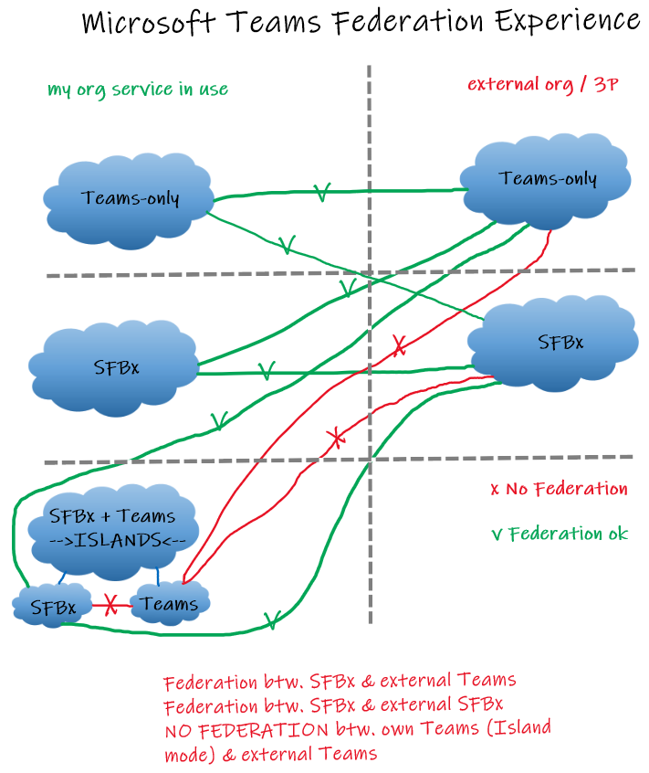 Teams federation provides the ability to federate with external organisations similair to what we’ve used to from SfBx. Nevertheless we need to pay attention to the user experience and federation experience which migh be slightly different during a coexistence of SFBx and Teams.