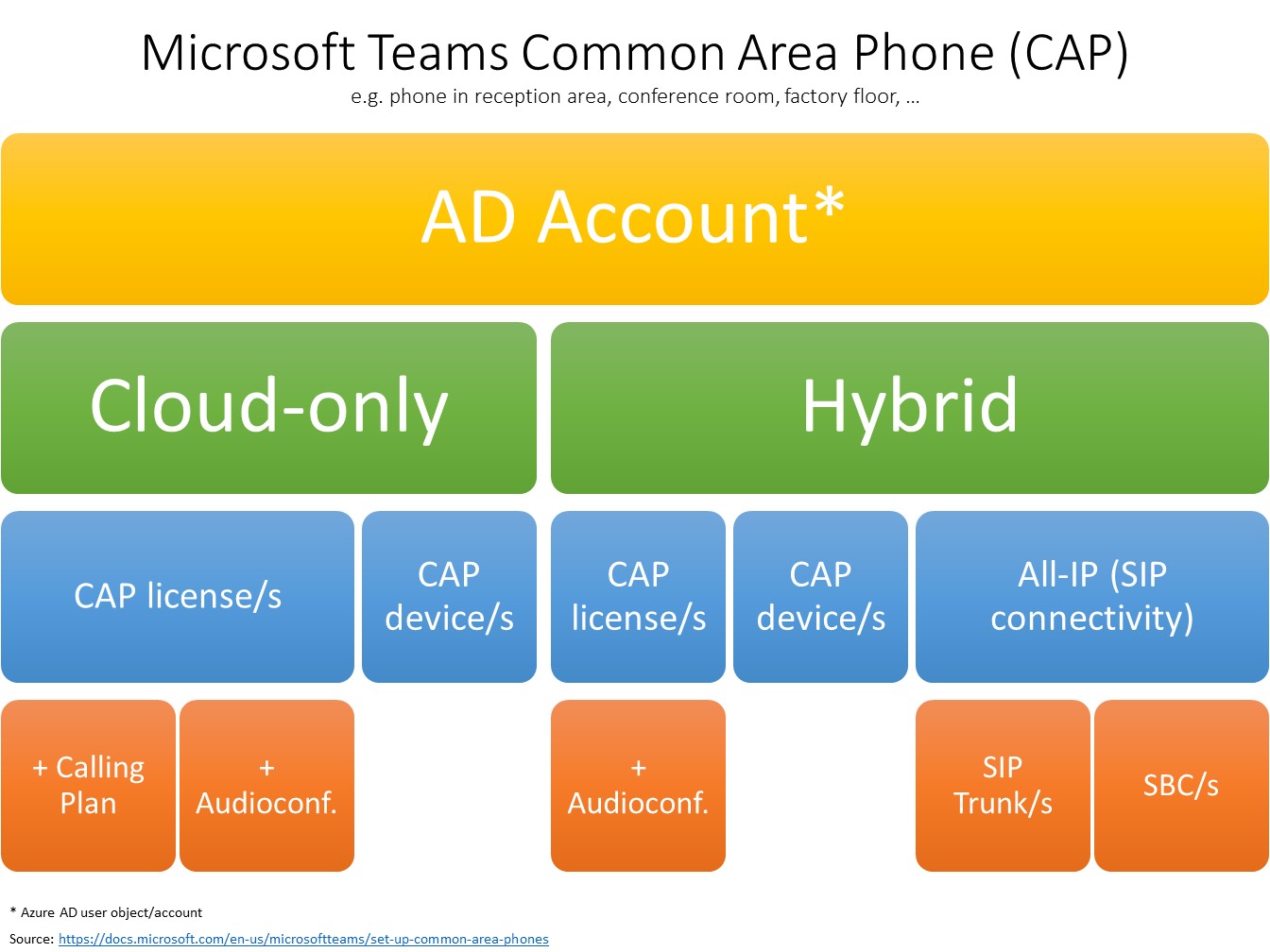The above drawings quickly depict how you can license users, common area phones, meeting room devices and even call queues or auto attendants for Microsoft Teams.