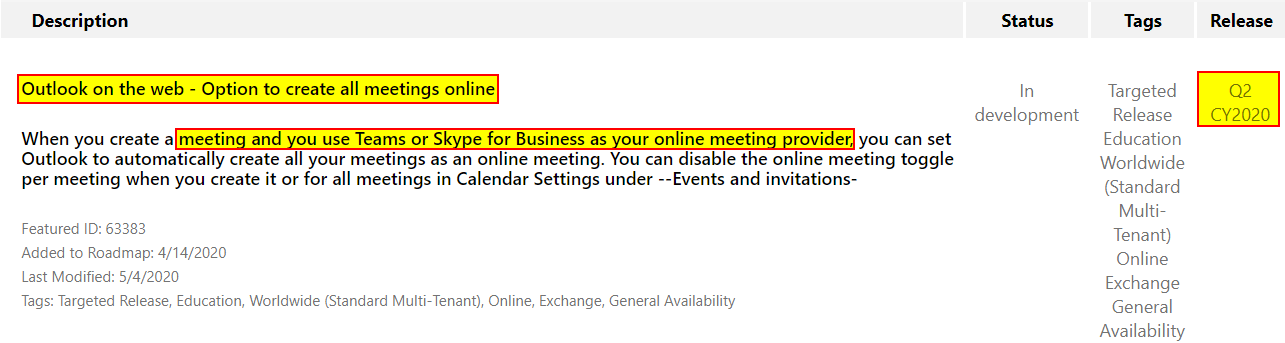 At the bottom of this post you can find the links to the user guide on how to create a Teams meeting in Outlook on the web/for iOS/for Android, to start right away scheduling Team meetings, as soon as it becomes available. So, you should, as usual, keep your mobile device and apps up-to-date.