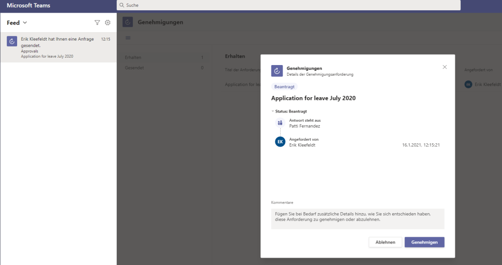 Of course, if enabled, you can utilize approvals directly within Teams. But not only the approvals from Teams itself, but approvals from Power Automate and this offers a rich extensibility due to the fact that there are 350+ connectors like AzureDevOps etc.