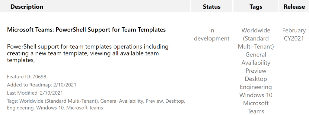 - Microsoft 365 Roadmap Feature ID 70698