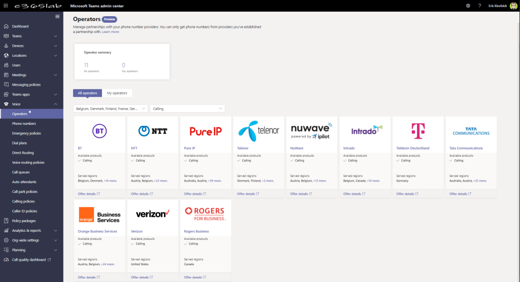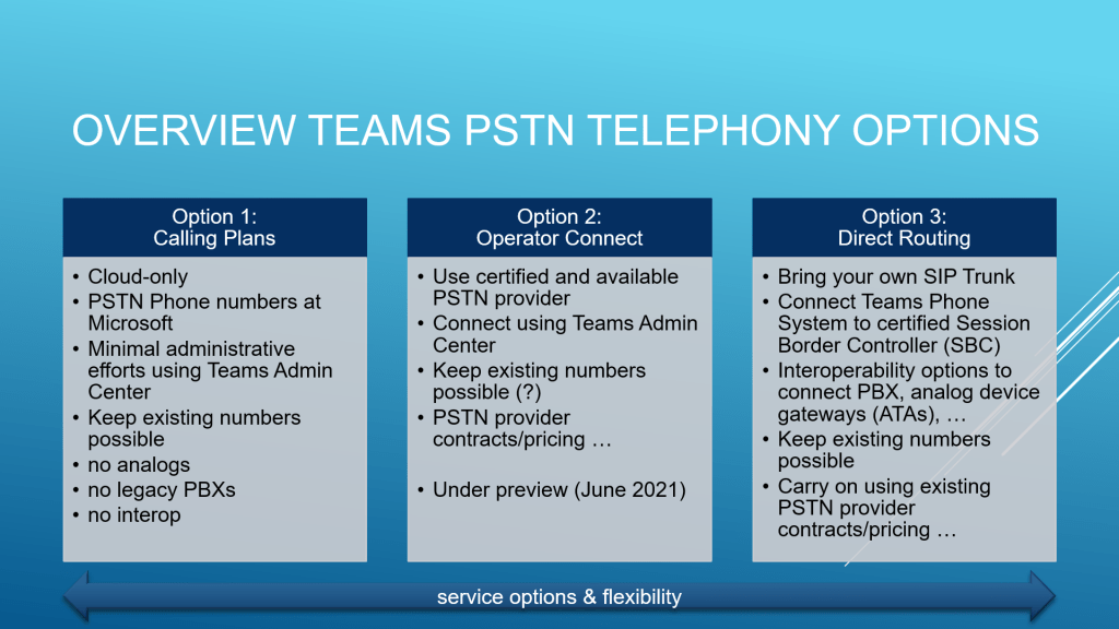 So, that’s what’s available basically. Operator Connect is a new option which I would position between Calling Plans and Direct Routing, especially because it is a service where you do not need to maintain your own SBC and can control your Teams calling straight out of the Teams Admin Center.