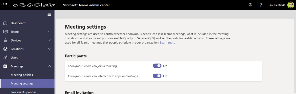 Enabling anonymous join is a tenant-wide setting. That’s why you should carefully think about enabling it or not.