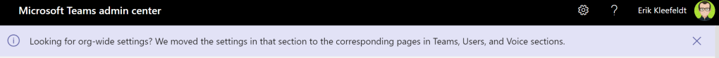 Recently the Microsoft Teams Admin Center (TAC) received an update. The update brings together what belongs together like the calling space, user space and voip space. Furthermore, I noticed that the performance of the TAC was improved so that clicking on another space is much more fluent and much faster.