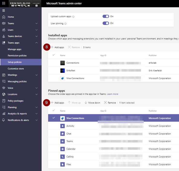- To deploy and pin the Viva Connections app on the Teams navigation bar for all users, go to Setup Policies