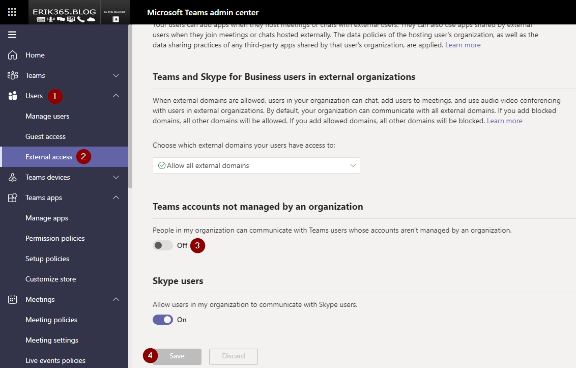 Source: Screenshot Microsoft Teams Admin Center – External access settings