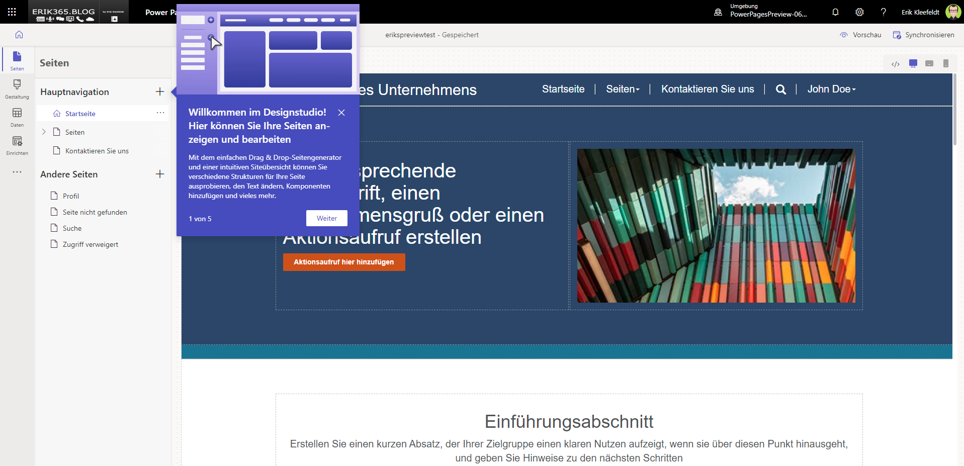 I made a quick first run on Power Pages and I like to share some first impressions and screenshots (de-de) with you.