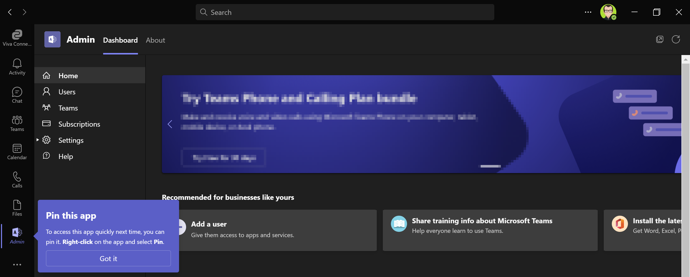 The Admin app could be interesting in smaller environments and especially if your are cloud-only. There are some quick access options which are easily accessible without the need to open the big Teams Admin Center.