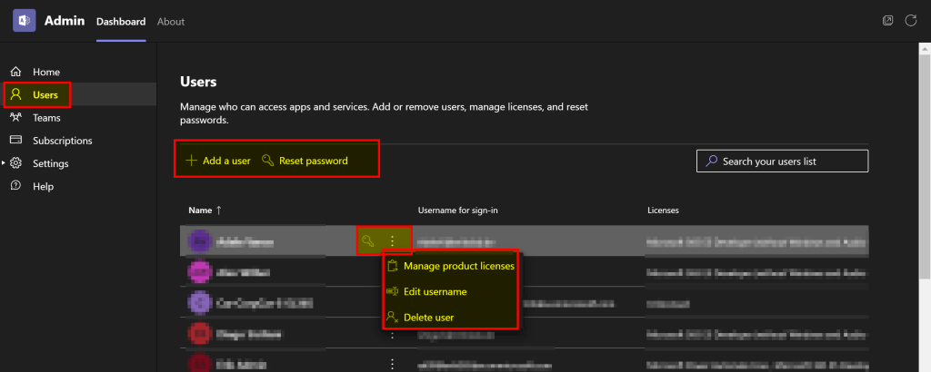 Please note that the availability of what you can do might differ depending on your backend configuration, e.g. are your users cloud-only vs. hybrid (AD/AAD) etc. Furthermore it depends on your administrative permissions / role.