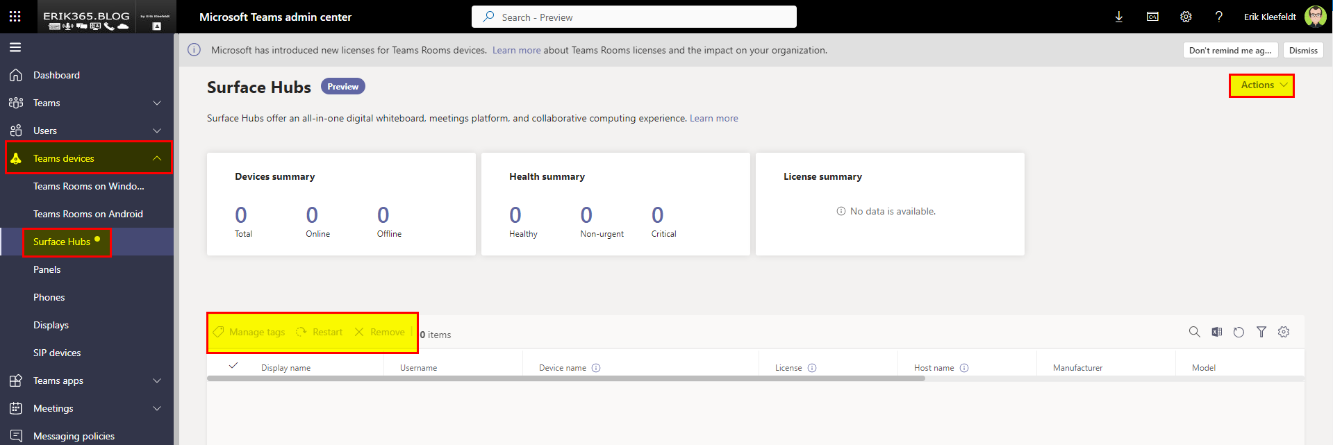Microsoft is adding more and more features into Microsoft Teams and its administration, as we all know. This post is about a noteworthy update on Microsoft Teams device management. If you use many certified devices for Microsoft Teams you might already know that you can manage these within the Teams Admin Center (TAC). In a recent Microsoft 365 message center notification MC465912 it was mentioned that you can now also manage Surface Hubs in TAC.