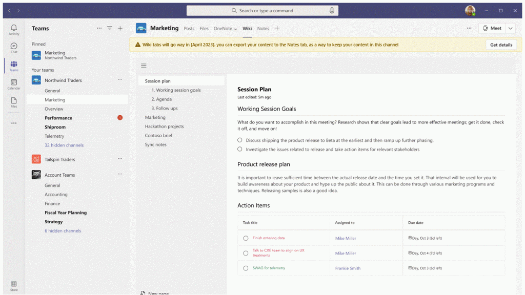 In my honest opinion, wikis did not deliver what they should based on their name. In past Teams collaboration workshops and trainings which I held the expectation based on the term “wiki” and what the actual “wiki” within a Teams channel offered differed a lot. That’s why using OneNote as an notetaking app in Teams channels instead of the wiki functionality was always a preference by workshops’ attendees as the could compare both, wiki and OneNote.The latter has more to offer especially with their own apps on Windows, iOS and Android which added broader capabilities to it. So stay tuned via Microsoft’s 365 message center regarding this change, in case you have been using wikis in Teams. From now on, you might better not proceed to use Teams wikis and start using OneNote instead.