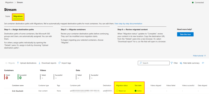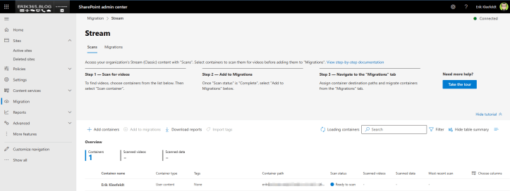 - The migration tool (on SharePoint) shows now your video containers which you have on Stream (Classic).