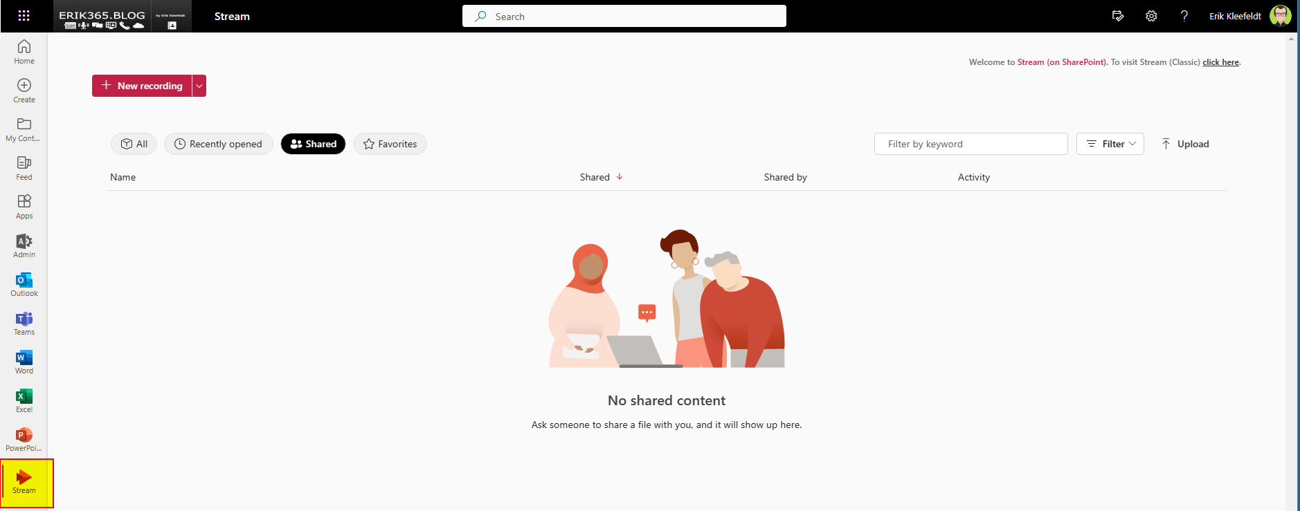 - Users get now the message displayed if they access Stream (Classic) – in can view it because I’m an admin, users won’t because they don’t have access anymore