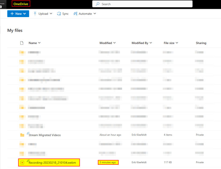 - The recording is stored on OneDrive, my OneDrive root path