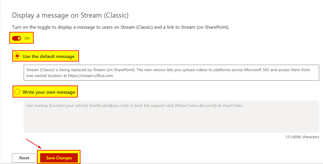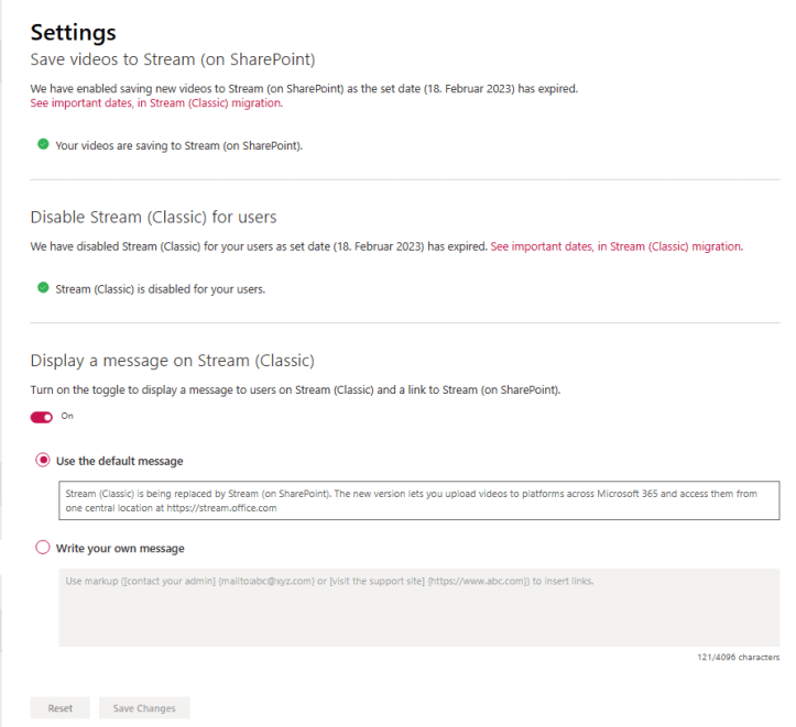 - We enable to display a message that Stream (Classic) is the old experience and users should use Stream (on SharePoint)