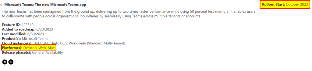 In this post I like to highlight an upcoming change of the Microsoft Teams preview client app. Today’s preview app is planned to be transitioned into generally available starting from October 2023 as mentioned in a recent Microsoft 365 roadmap update 122540.