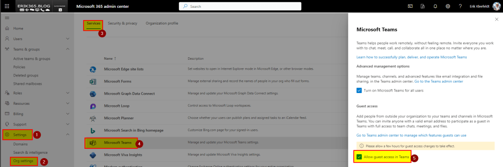 To configure more and fine-tune guest access for Teams, there are some more granular settings in the Teams Admin Center.