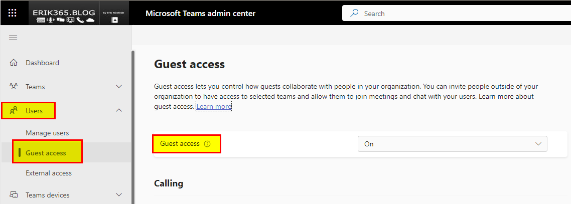 To configure more and fine-tune guest access for Teams, there are some more granular settings in the Teams Admin Center.