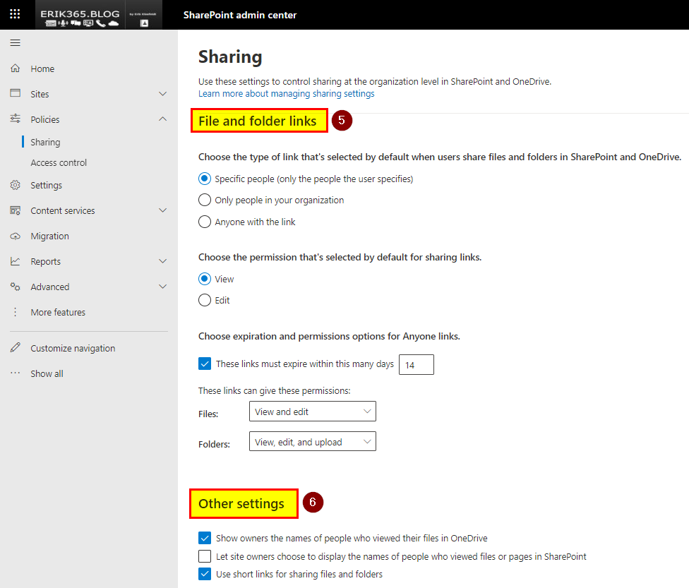 For a bit more granular set up you can go to the SharePoint Online admin center.