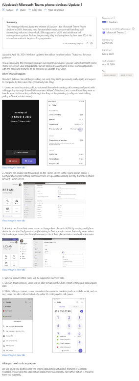 Teams Phones are getting an update probably starting in early May 2024. The update should be completed by the end of June 2024 based on the current Microsoft 365 message center notification MC713374. Originally it was planned to start in early April till the end of May.