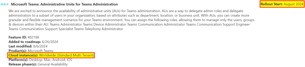 In this post, I would like to highlight the upcoming rollout of support for Administrative Units (AUs) in Microsoft Teams. Administrative Units (AUs) enable companies, commonly with many admins, sites and granular administrative restrictions, to scope administration or management on users and objects within specific Administrative Units (AUs). Microsoft has scheduled the feature’s rollout to start in August 2024.