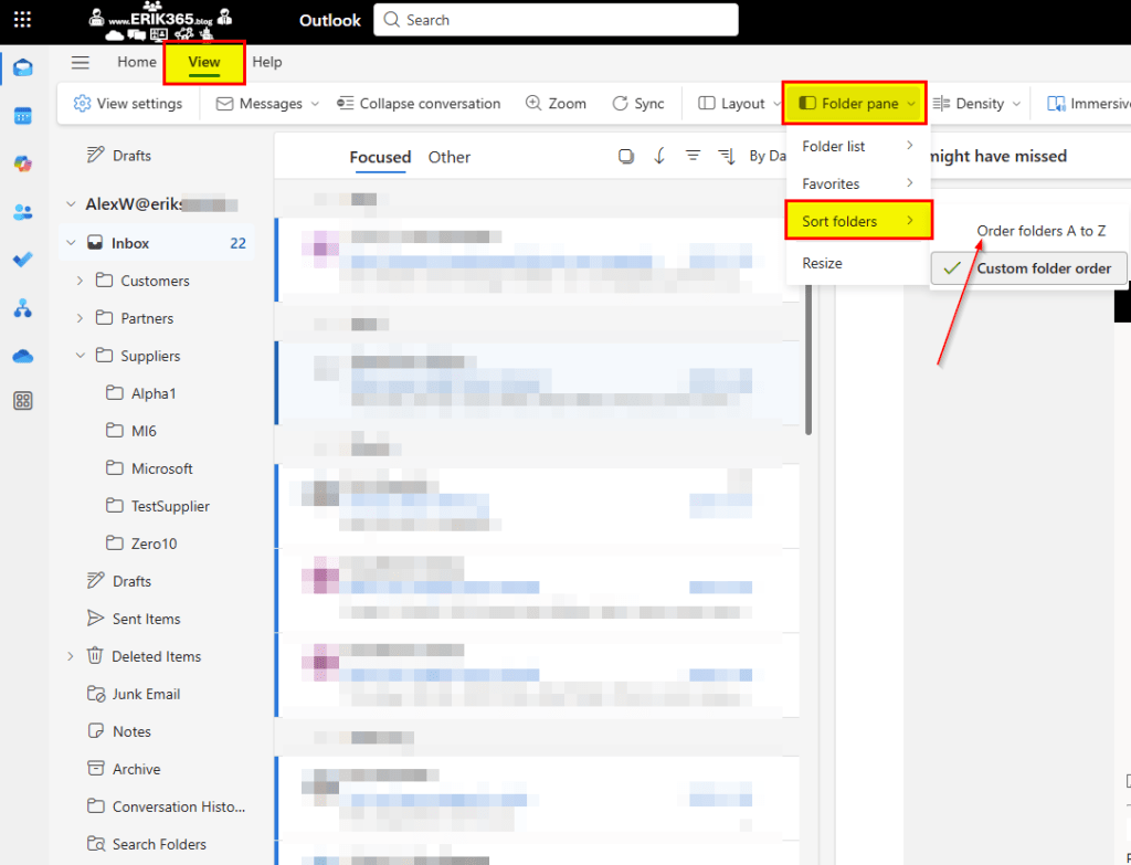 Here’s how to restore alphabetical sorting in Outlook:
